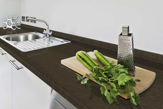Декор, напоминающий структуру льна является продолжением столь популярной текстильной тематики в мебели.